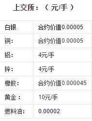 合约单位:10吨/手交易手数:1手每手价格:4000元/吨手续费率:0.0001